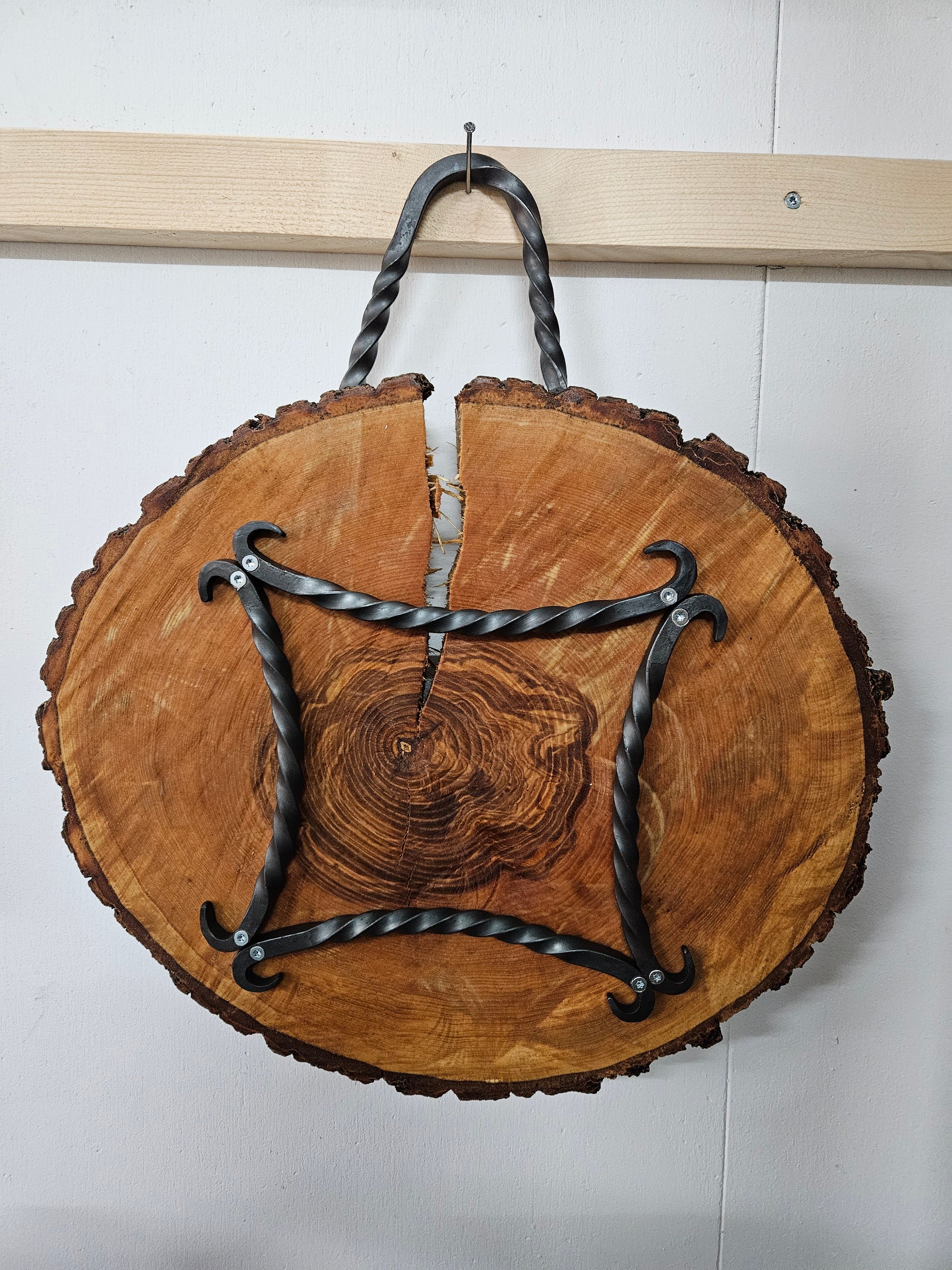 Eschenrondelle, Rechteck aus Rundstahl 10mm, geschmiedet